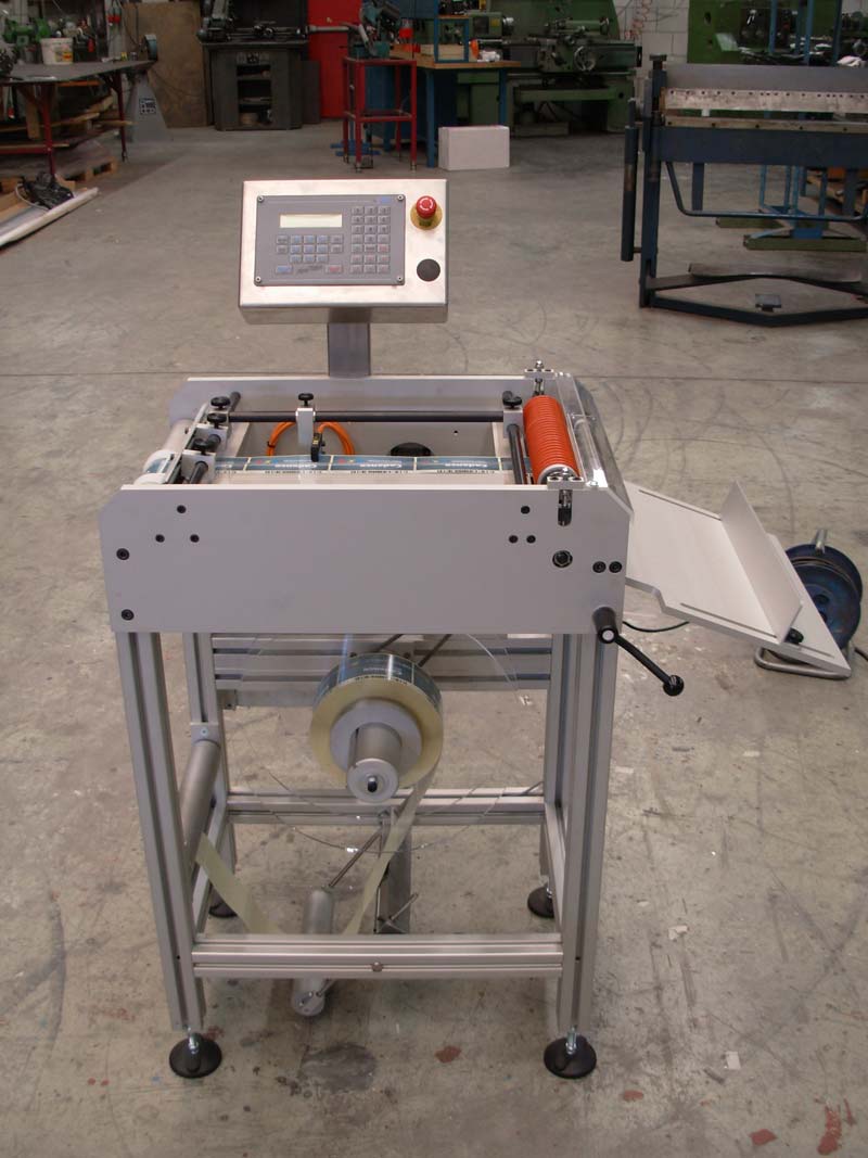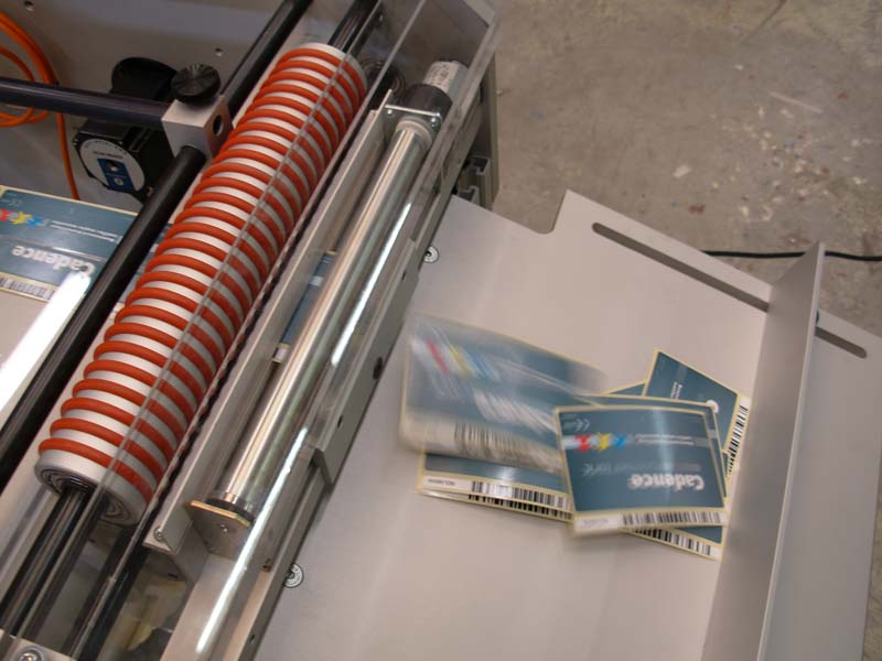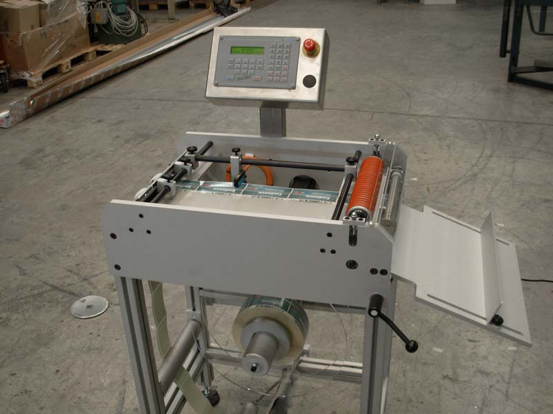 Deze machine knipt etiketten die op een rol gewikkeld zitten af. Het aantal etiketten is in te stellen.