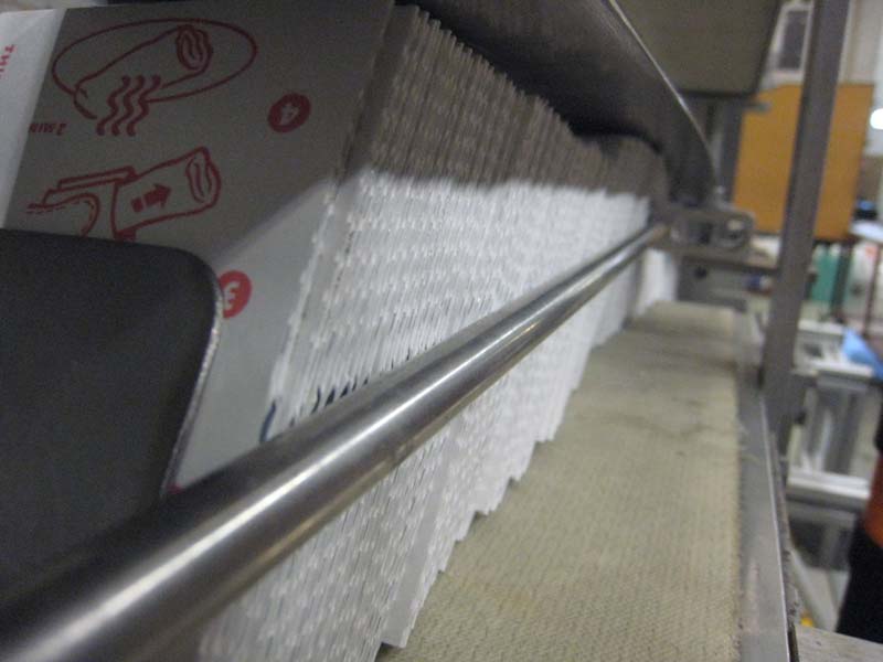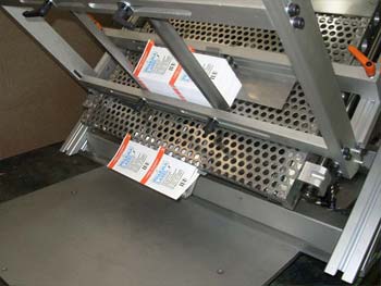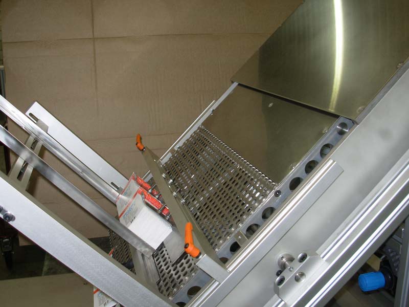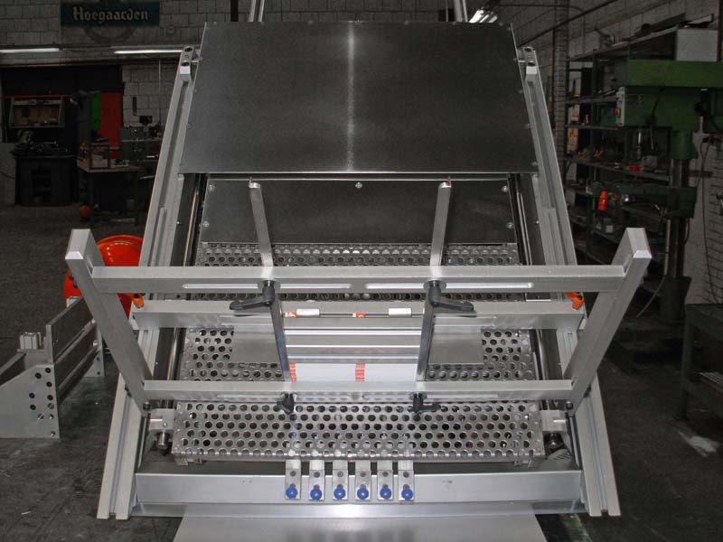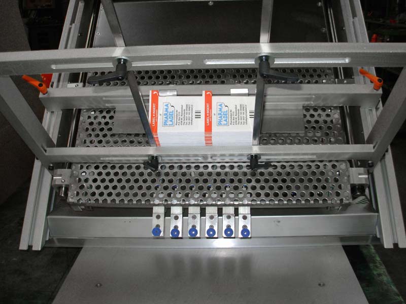 In samenwerking met een klant vervaardigde Lakens Metaal een machine om plano doosjes te voorzien van een etiket. Een sheetfeeder legt een plano doosje op een transportband waarop het doosje wordt getransporteerd. Tijdens dit transport wordt het doosje voorzien van een etiket. Aan het einde van de transportband wordt het doosje gestapeld.